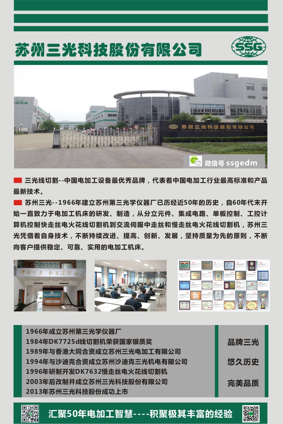 蘇州三光機(jī)電設(shè)備有限公司,原名蘇州第三光學(xué)儀器廠,國(guó)企改制后的線切割設(shè)備生產(chǎn)廠家,電加工行業(yè)上市公司。