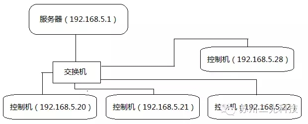下面就來詳細(xì)介紹一下該功能的使用方法。首先在硬件上實現(xiàn)聯(lián)網(wǎng)。可以指定一臺計算機(jī)作為整個網(wǎng)絡(luò)的服務(wù)器,其它控制機(jī)作為網(wǎng)絡(luò)的客戶端,服務(wù)器和客戶端都需指定IP地址。聯(lián)網(wǎng)方式如下圖一所示: